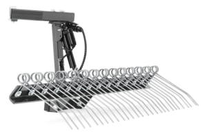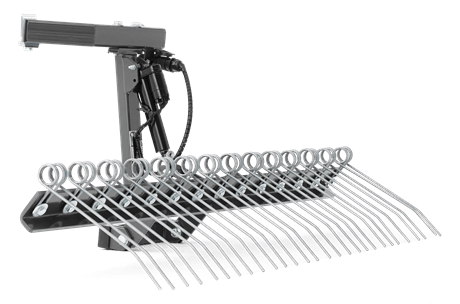 Stabilna i niezawodna zgrabiarka do użytku wraz z broną pazurową do wyrównywania żwiru i zbierania chwastów. Elektryczne podnoszenie i opuszczanie zgrabiarki sprawia, że jest ona ergonomiczna i łatwa w użyciu.