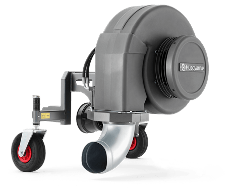 Wysokowydajna dmuchawy do czyszczenia powierzchni z liści i śmieci. Wirnik napędzany wałem. Wylot powietrza obraca się o 360 stopni i jest sterowany z siedzenia kierowcy. Wymaga zestawu hydraulicznego.