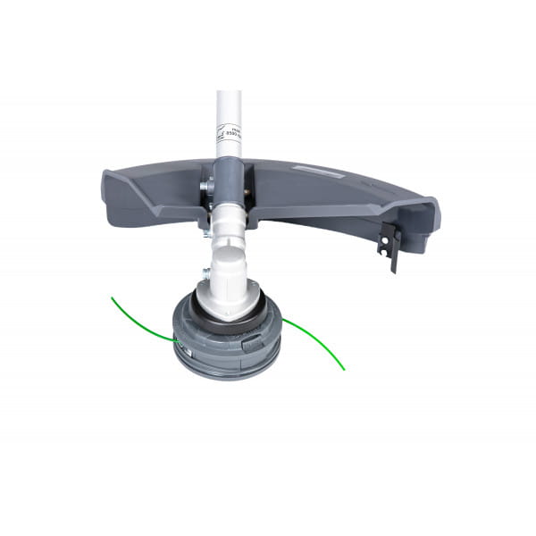 - Głowica tnąca to nowa wersja niezawodnej głowicy żyłkowej “Tap & Go” wyposażonej w nylonową żyłkę 2,4mm, której długość można łatwo zwiększyć poprzez uderzenie wirującą głowicą w podłoże podczas cięcia trawy, co pozwala na nieprzerwaną pracę.