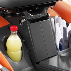 Otwarty schowek po lewej stronie jest łatwo dostępny podczas koszenia