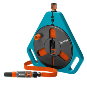Płaski wąż jest już nawinięty na kasetę i wyposażony w niezbędne elementy Original GARDENA System oraz zraszacz prosty. Zestaw jest zawsze gotowy do użycia.